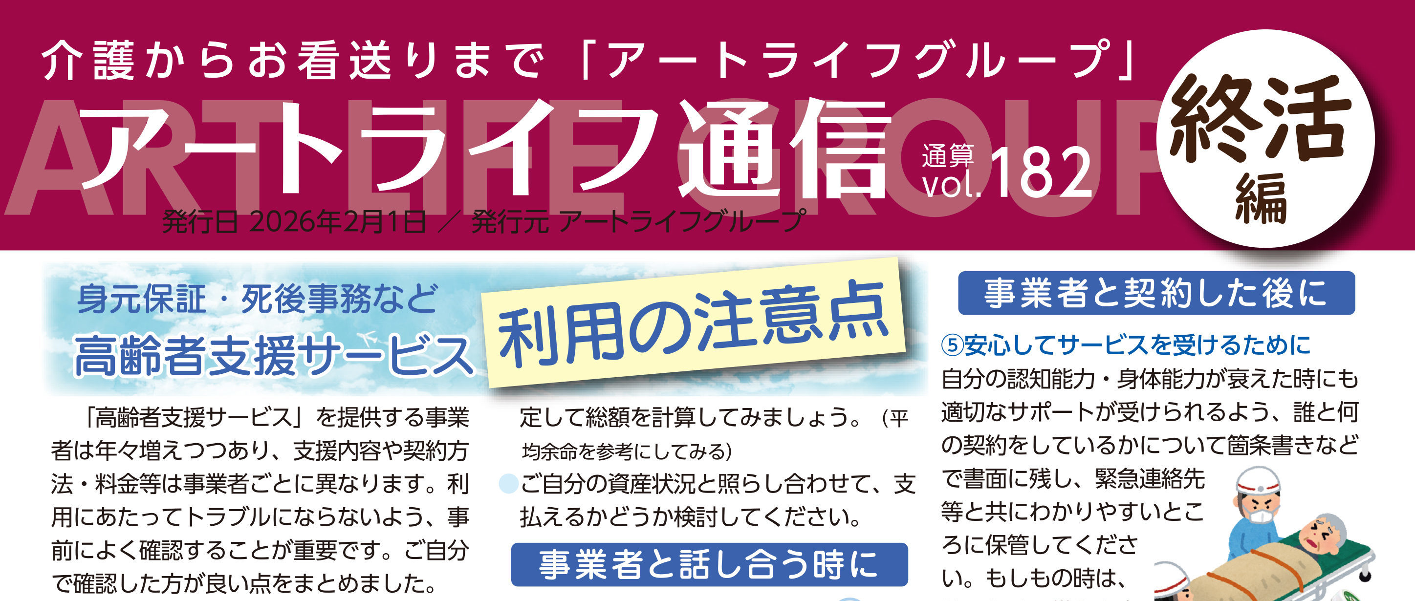 【アートライフ通信】182号 高齢者支援サービス利用の注意点