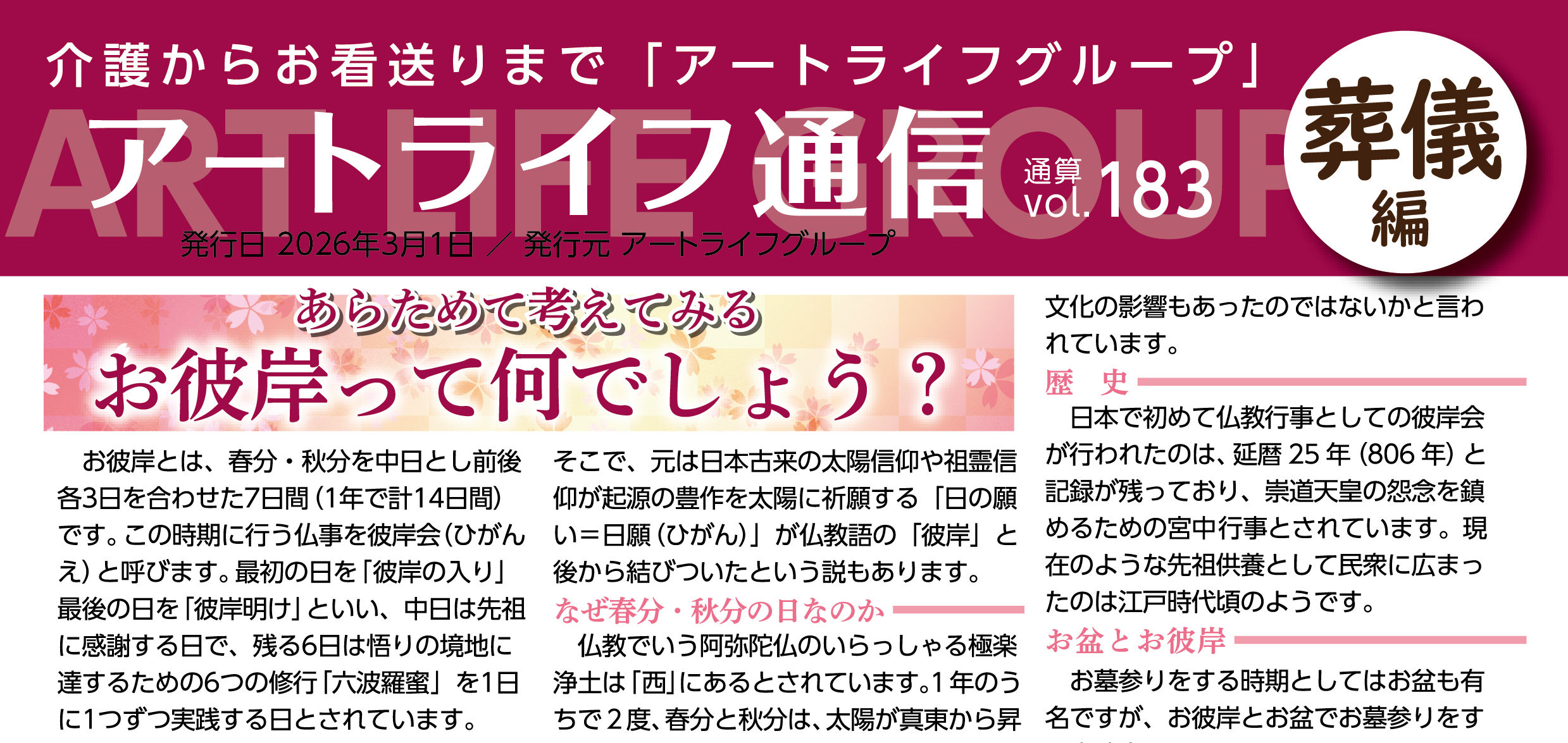 【アートライフ通信】183号 あらためて考えてみる お彼岸って何でしょう?