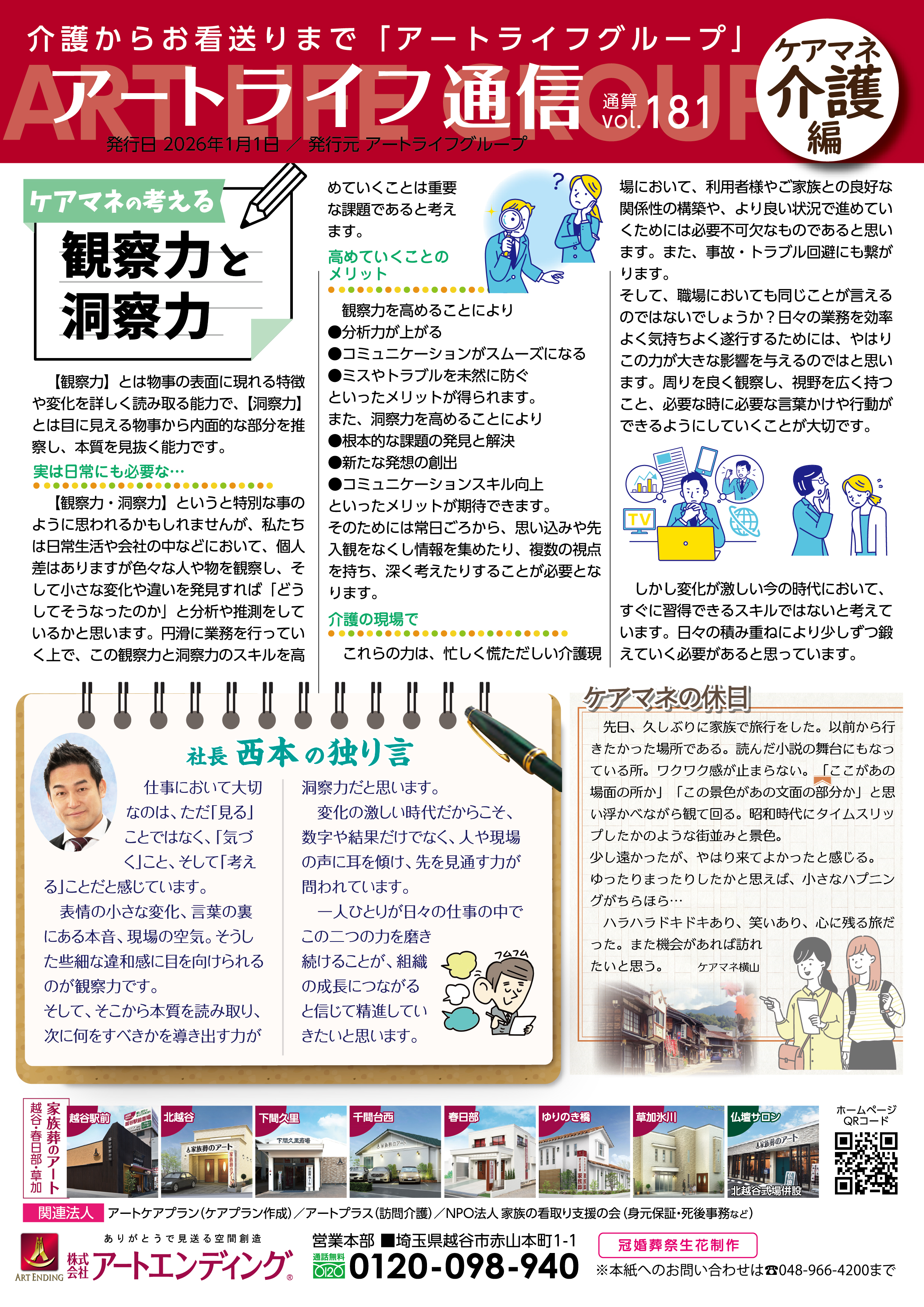 【アートライフ通信】181号 ケアマネの考える観察力と洞察力