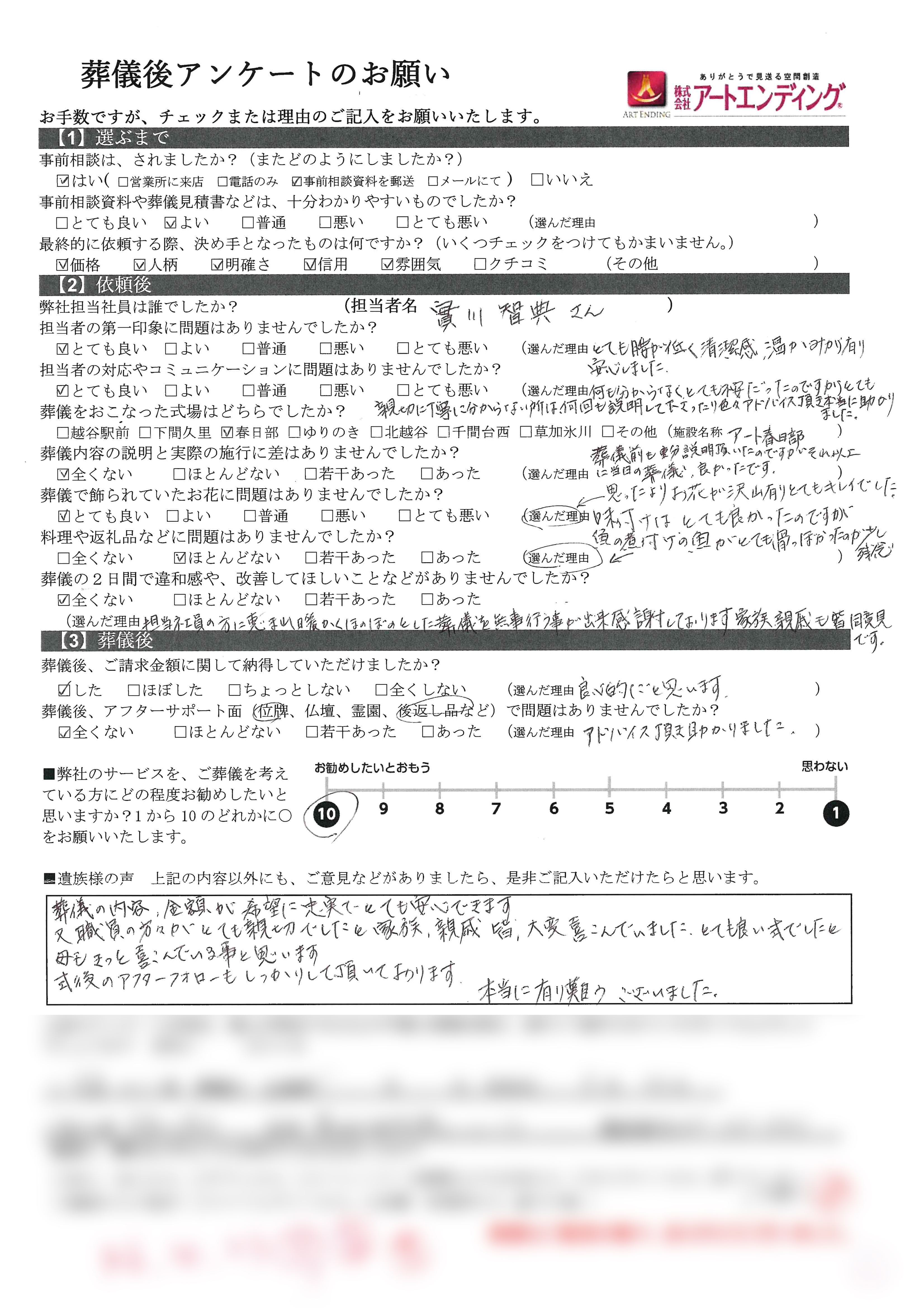 ご希望に沿った内容でご安心いただけたこと、また職員の対応につきましてもご家族様、ご親戚様からお喜びの声をいただけましたこと、担当一同大変嬉しく存じます。
